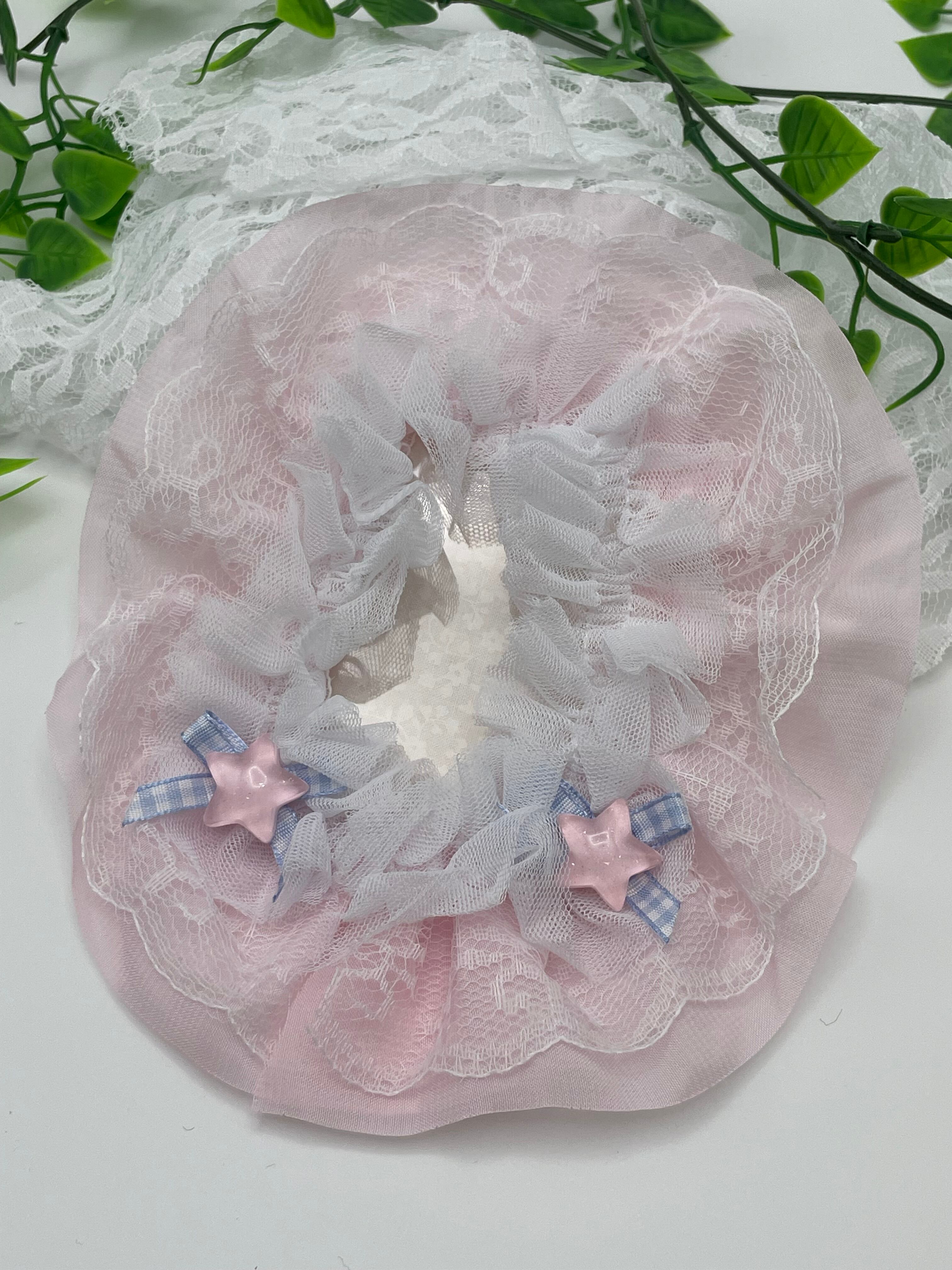 ・リボンやフリルについているしみは、布がほつれないようにつけたほつれ止めのあとです。