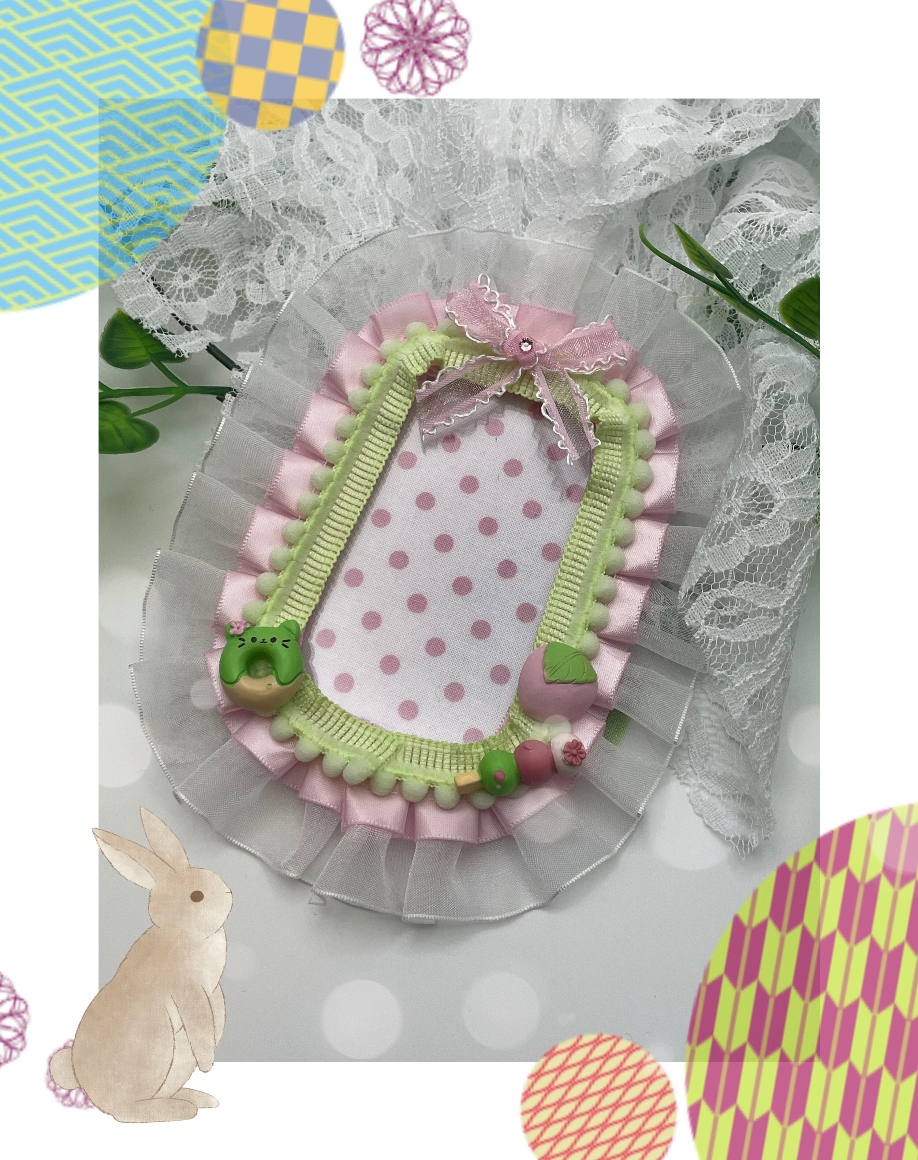 ピンク×グリーンの和菓子っぽケースです。